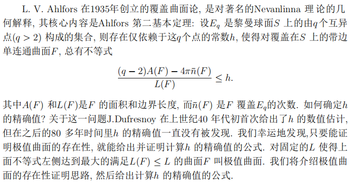 题 目:极值曲面与Ahlfors 第二基本定理的精确形式