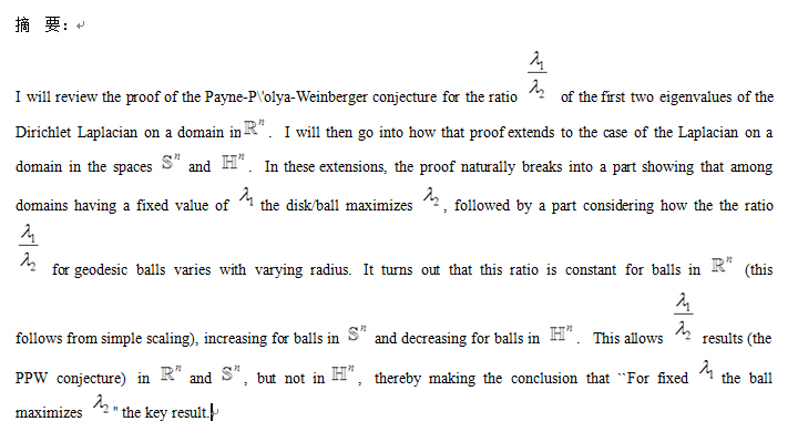 题 目:Sharp Bounds for the Second Eigenvalue of the Dirichlet Laplacian in Spaces of Constant Curvature
