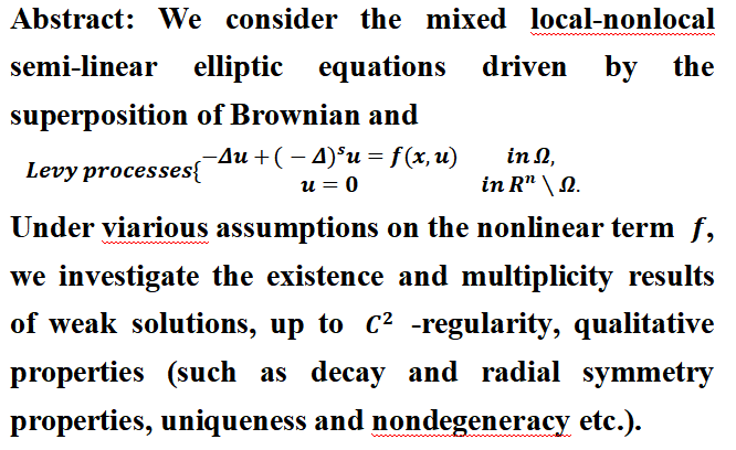 Title: Existence, regularity and qualitative properties of mixed elliptic equations