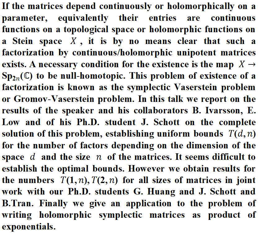 Speaker: Prof. Frank Kutzschebauch (University of Bern, Mathematical Institute)