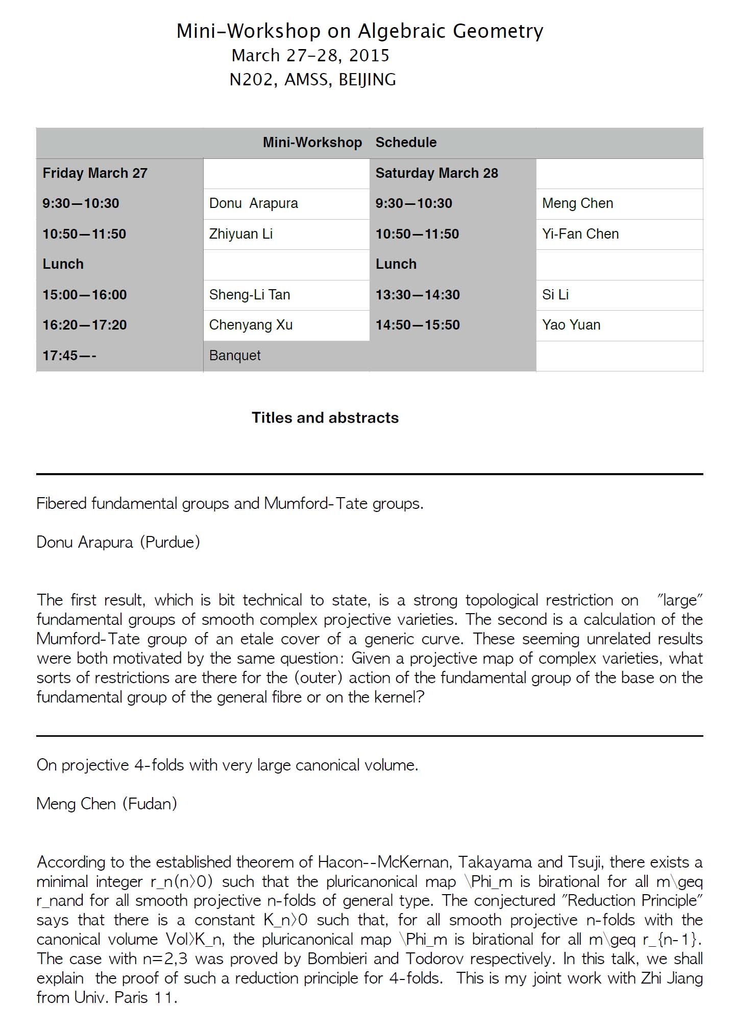 2015 年天元高级研讨班”代数几何模空间”会议